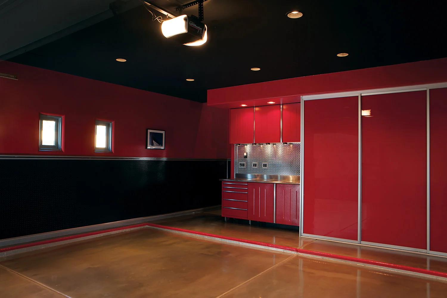Built by Garage Mahals, this racing-inspired, hot-rod red, show garage is the perfect place to store your automotive works of art when they’re not out cruising long, flat stretches of open road that dot Greater Phoenix.